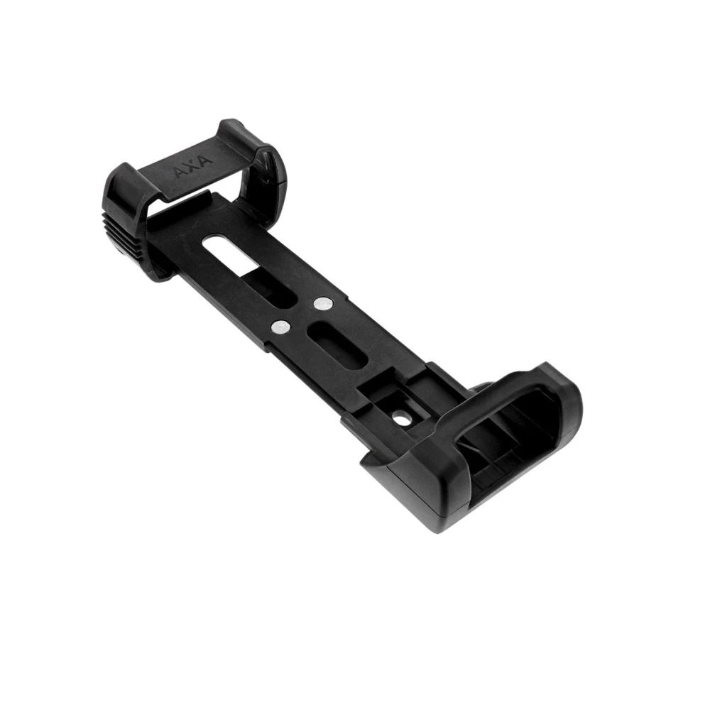 Das AXA Fold wird mit einem praktischen Halter geliefert. Dieser lässt sich am Flaschenhalter montieren oder Sie befestigen ihn mit den 2 mitgelieferten Montagebändern am Rahmen. Da Sie das Schloss nicht aus dem Halter schieben müssen, ist es für alle Rahmen geeignet. Dank des revolutionären Schließmechanismus sitzt das Schloss fest in seinem Halter und klappert während der Fahrt nicht.