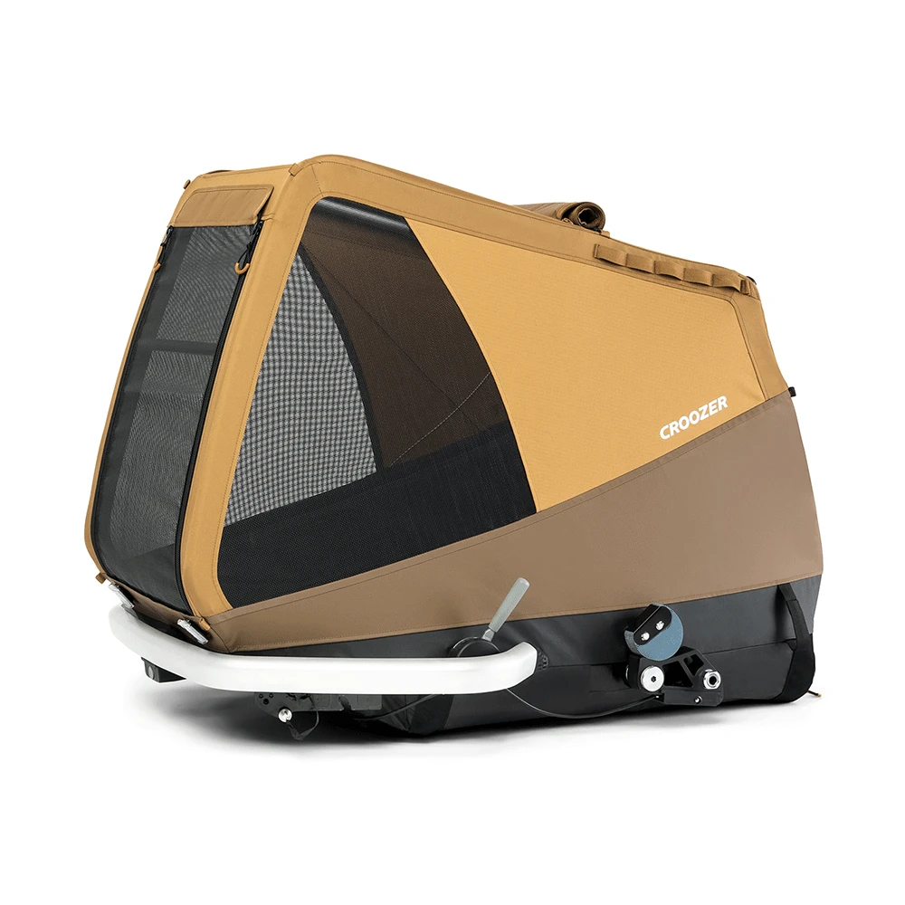 Fahrradanhänger für den Transport von großen Hunden bis 45 kg. Mit Croozer AirPad Federung, geländetauglicher Bereifung und komfortablem Faltsystem.