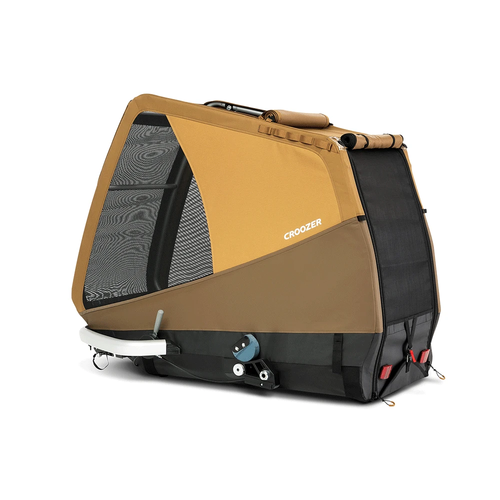 Fahrradanhänger für den Transport von sehr großen Hunden bis 45 kg. Mit Croozer AirPad Federung, geländetauglicher Bereifung und komfortablem Faltsystem.