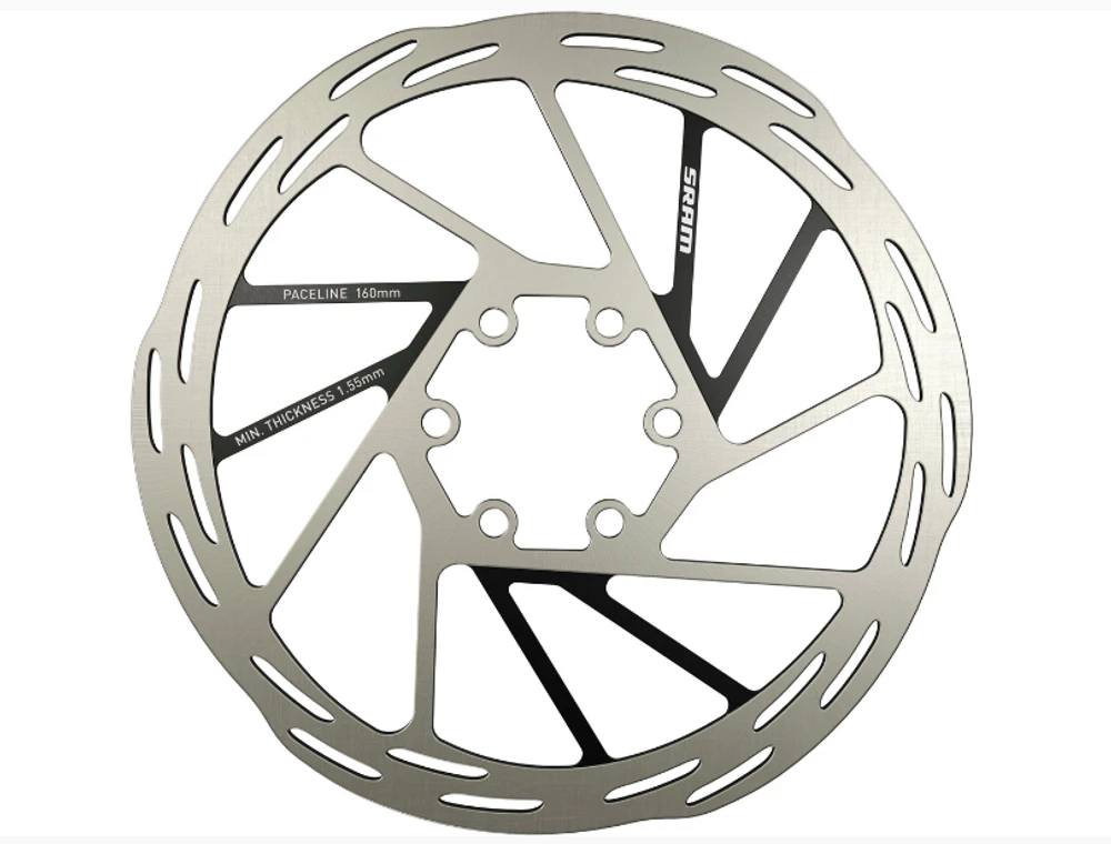 SRAM Paceline-Bremsscheiben verbinden das elegante Design der eTap AXS-Straßengruppen mit einer optimierten Belüftung: für leise und geschmeidige Bremsperformance.