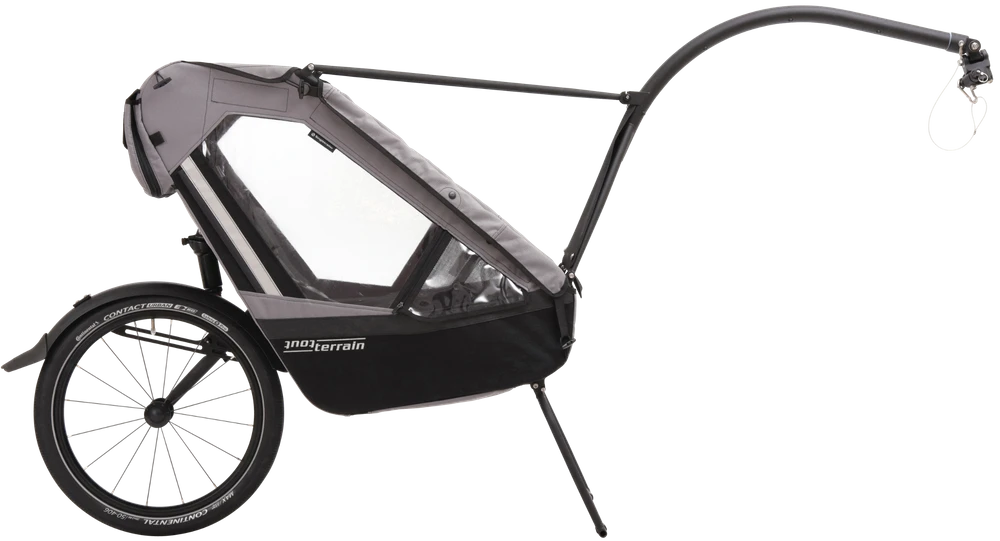 Als Beifahrer wird dein Kind die Vorzüge im komfortablen Anhängerinnenraum lieben: einstellbares, witterungsbeständiges Ripstop-Verdeck, komfortabler Sitz mit atmungsaktivem Bezug und butterweiche Federung (einstellbar von 160 mm bis 200 mm).